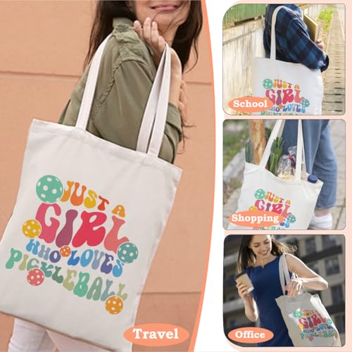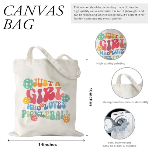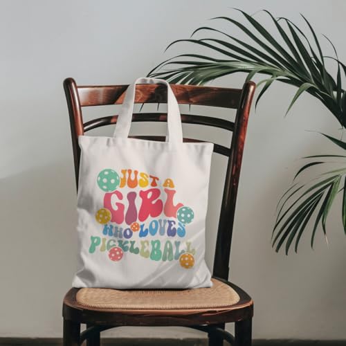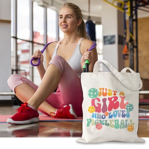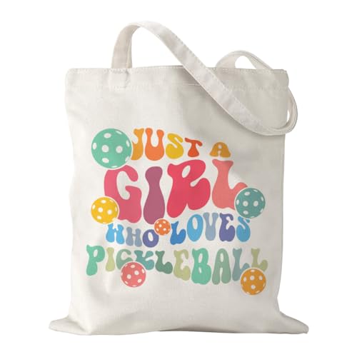 Sldpngo - شنطة يد كبيرة توت من القماش للنساء من سلادبنجو، هدايا لمحبي كرة البيكل بول، هدية لمحبي كرة البيكل بول، شنطة كبيرة توت بعبارة Just A Girl Who Loves Pickleball