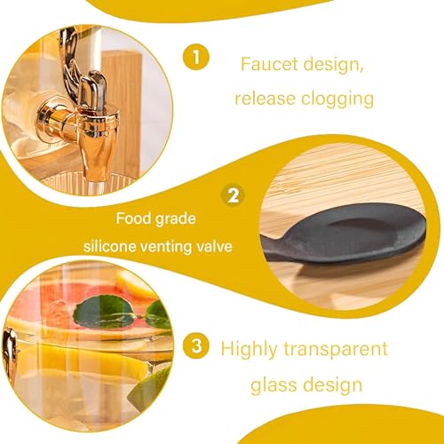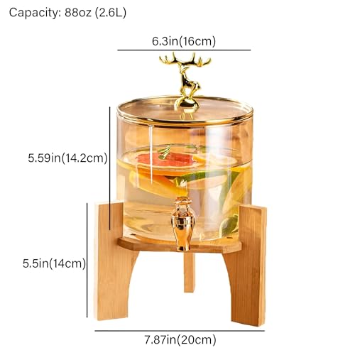 Generic - Sleek Beverage Dispenser-2.6 Liter Glass Dispenser with polished wooden stand, soft faucet, textured cover, ideal for receiving guests with cold drinks such as juices, water or soft drinks. Practical