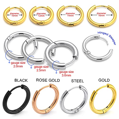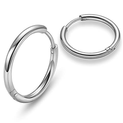 PiercingPoint - Sleeper Earrings/Sleeper Hoops- Anodized Huggie Earrings-(Sold as Pair) Minimalist Earrings- 12 Gauge - 16mm Diameter Surgical Steel Ear Piercing Hoop