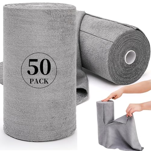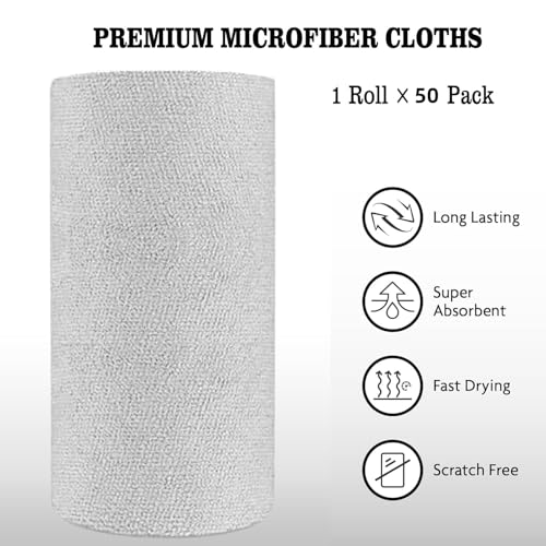- 【GENTLE & PREMIUM MATERIAL】 Measuring 12” x 12”, these cloths come in a convenient roll of 50, ensuring long-lasting use for all your cleaning needs. Perfect for delicate surfaces while maintaining superior strength.