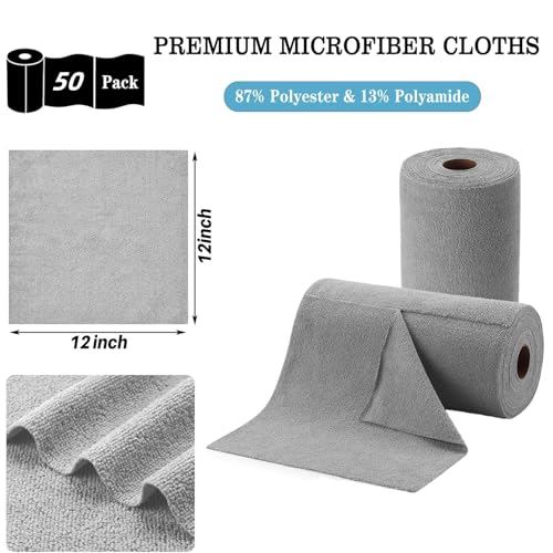 SLEEPHEAD - SLEEPHEAD®50 Pack Microfiber Tear Away Cleaning Cloth Roll,30x30 cm Reusable Tear Away Microfiber Towels,Washable Ultra Absorbent Rags Drying Dishcloths for Car,Home,Garage or Shop(Grey)