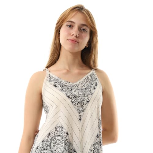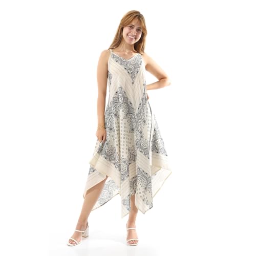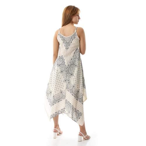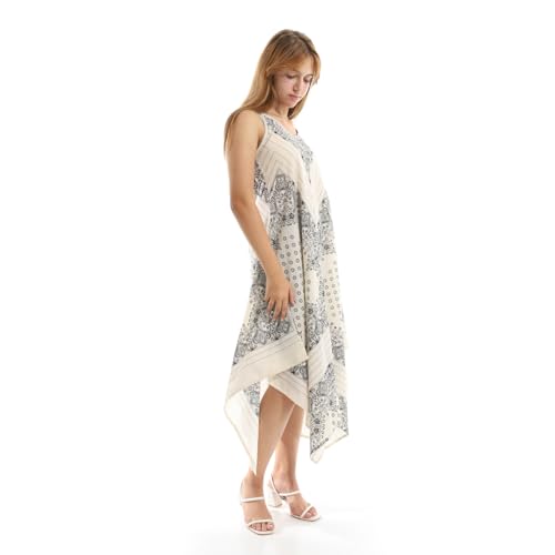 Coctail - Sleeveless Medi Dress with Geometric Print, Asymmetric Hem, V-Neck-4817