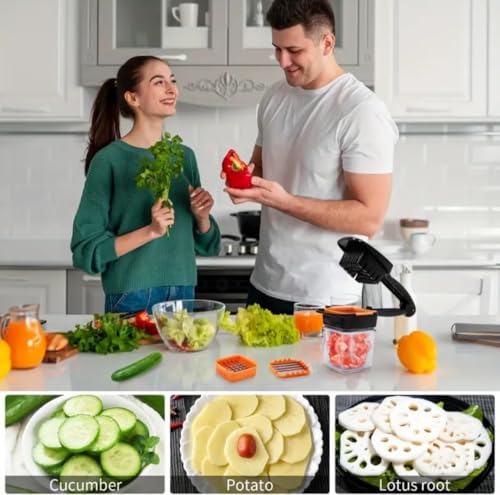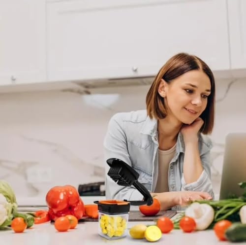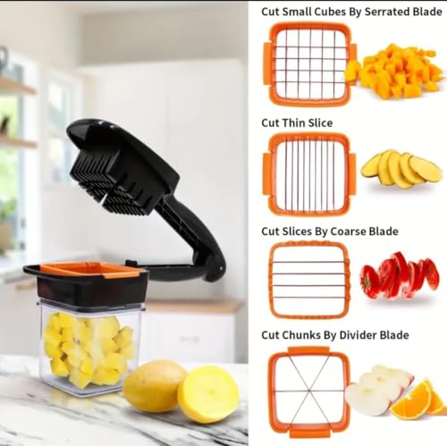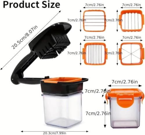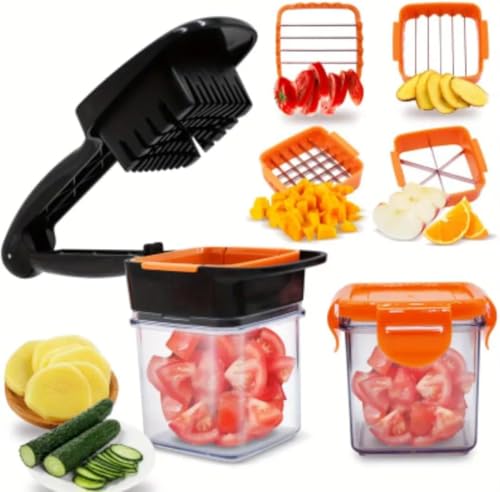 • Θ Nicer Cutter in hand format Θ The smallest of all can be operated with one hand and thanks to its compact size, it is ideal for on the go Θ Thick slices, thin slices, cubes, pins and sixth Θ Cut directly into the pot, pan or bowl Θ Collection container with a fresh lid for cutting directly into it and storing safely Θ Can keep the food airtight. Easy to Clean Θ Material: ABS+Steel Θ Metal Type: Stainless Steel Θ Type: Fruit & Vegetable Tools Θ Package Includes: 1 x 5-in-1 Fruit and Vegetable Cutter Set