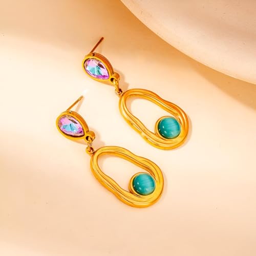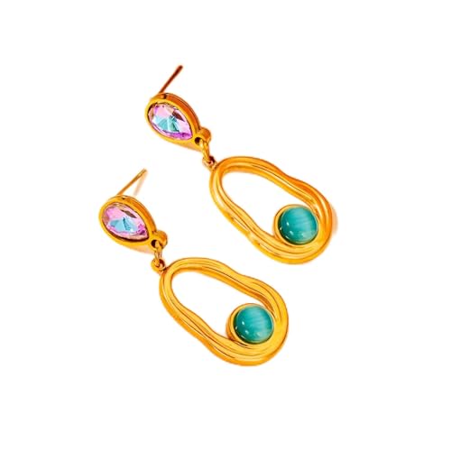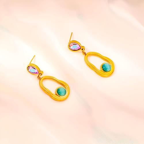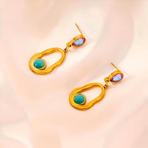 Generic - Sliding Earrings - Stylish large oval design in turquoise in gold style, Western silver jewelry for women, perfect for a festive or everyday look