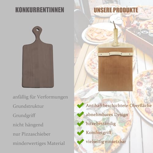 - High temperature non-stick pizza slider - Equipped with a powerful, heat-resistant non-stick cloth, our pizza peel can withstand extreme temperatures without warping, ensuring easy release and effortless cleaning.