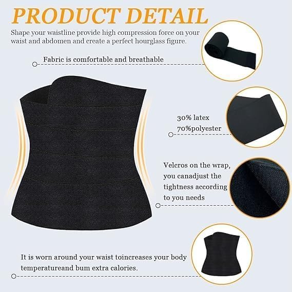 Generic - حزام تنحيف لشد الخصر والبطن وحرق الدهون وفقدان الوزن للنساء (لون أسود، 3 م)