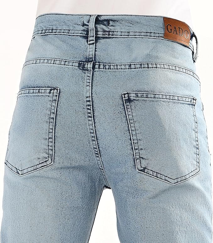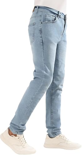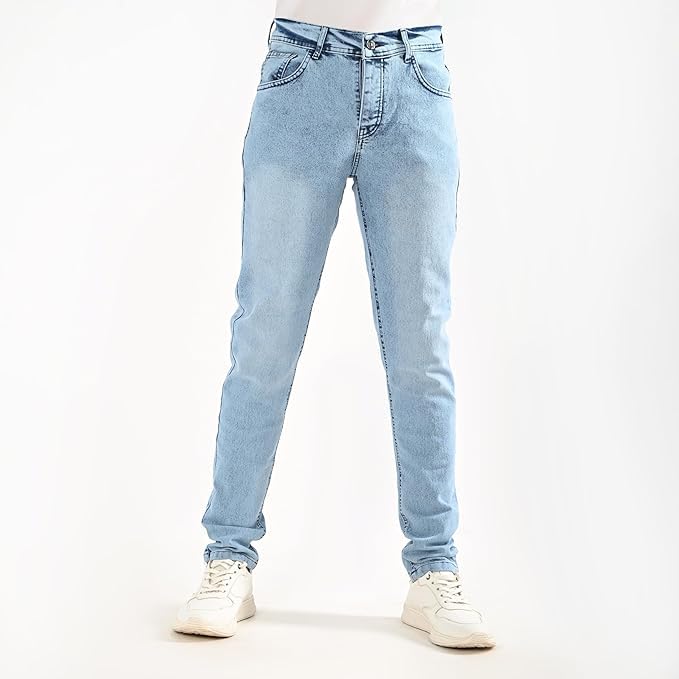 Generic - بنطلون جينز رجالي مقاسات خاصة سليم فت – خامة مرنة عالية الجودة عصري ومريح للخروج اليومي (ازرق فاتح, 44)