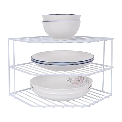 - This three-tier corner shelf maximizes vertical storage in cupboards, counters, or under-sink areas, making optimal use of often-wasted space in any kitchen layout.