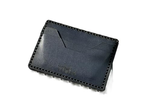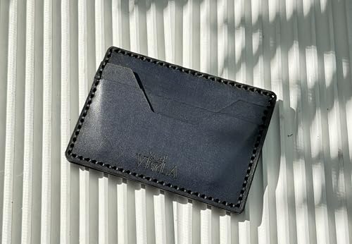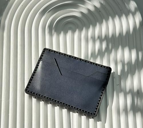 Generic - Slim Leather Card Wallet, Black, Genuine Leather, Slim and Compact Design, Hand Stitched, 3 Card Slots, Modern Classic (dark navy)