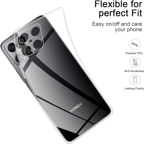 ELMO3EZZ - Slim Soft TPU Silicone Anti-fall & Shock-Absorbing & Anti-Scratch Protective Cover for Honor X8 - Transparent