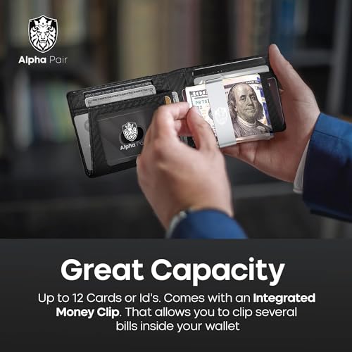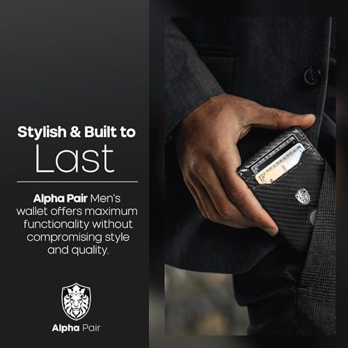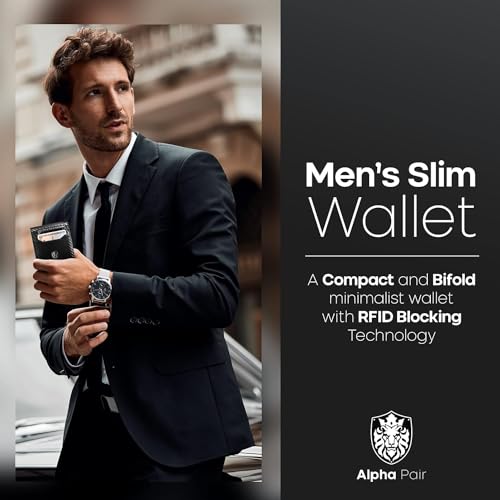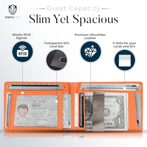 ALPHA PAIR - Slim Wallet for Men - RFID Men Wallets with Money Clip and 12 Cards Holder - Compact Minimalist Mens Wallets Leather - Modern Bifold Gift Wallet for Men - Black Men's Wallet Front Pocket Thin - Orange