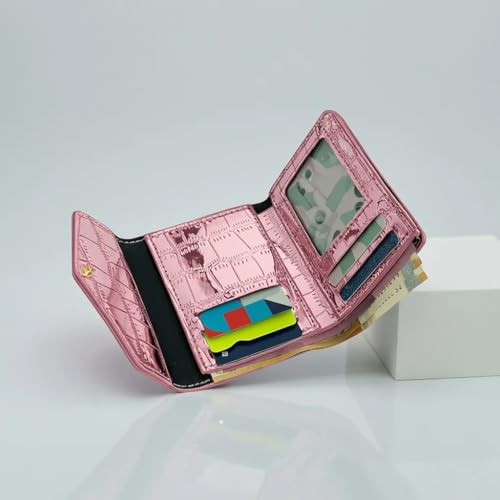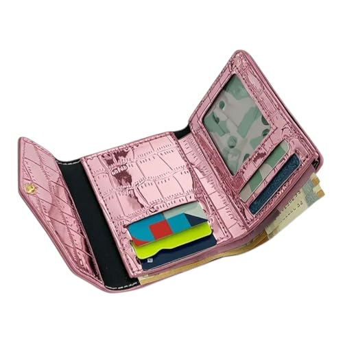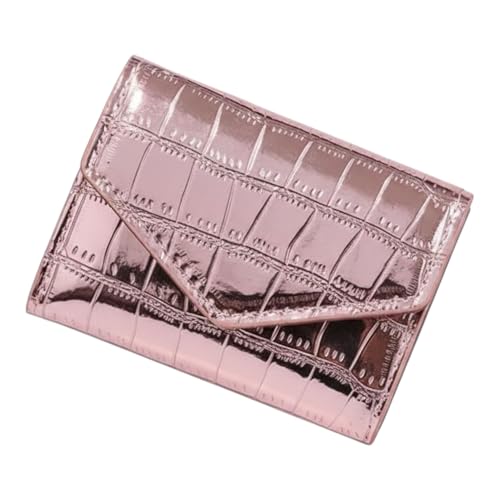 Generic - محفظة رفيعة بتصميم جلد التمساح المعدني وحامل بطاقات الائتمان، محفظة أنيقة عصرية للنساء والبنات وبطاقة الهوية والصراف الآلي بلون وردي