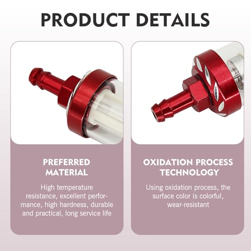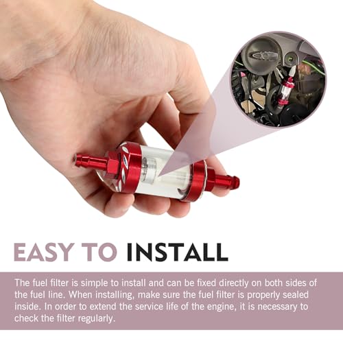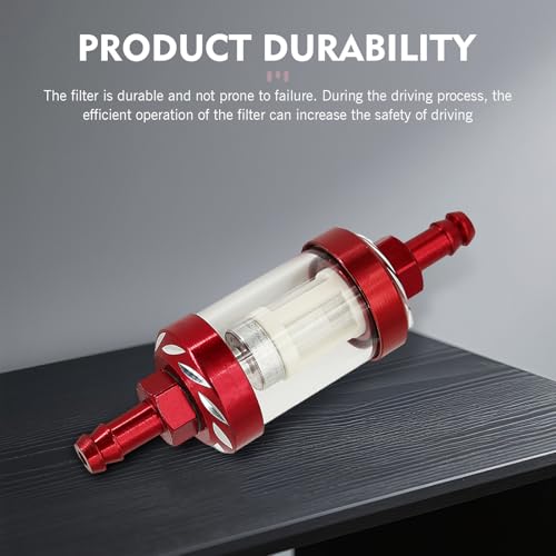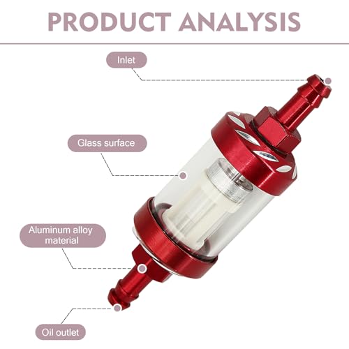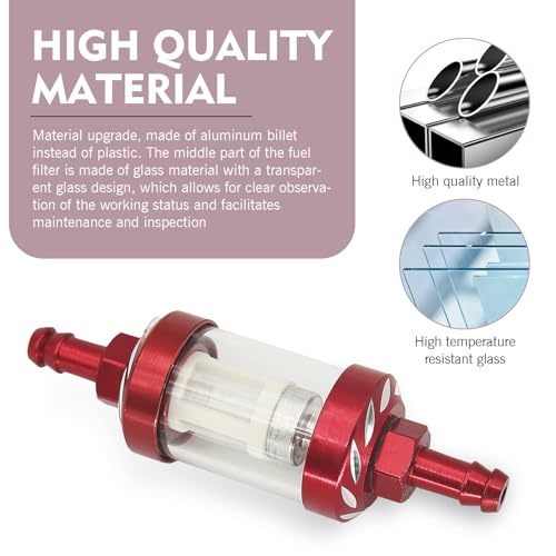 SLIMI - فلتر وقود للسيارة من سلايمي، مصنوع من خليط معدني مدمج مقاوم للصدا ومتين ومقاوم للماء، كوب فلتر وقود من الزجاج المقسى مقاوم للماء، ملحقات عالمية للدراجات النارية (احمر)