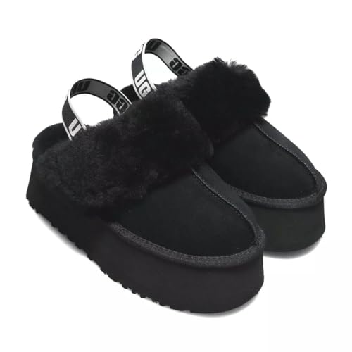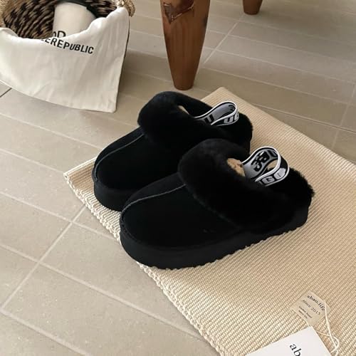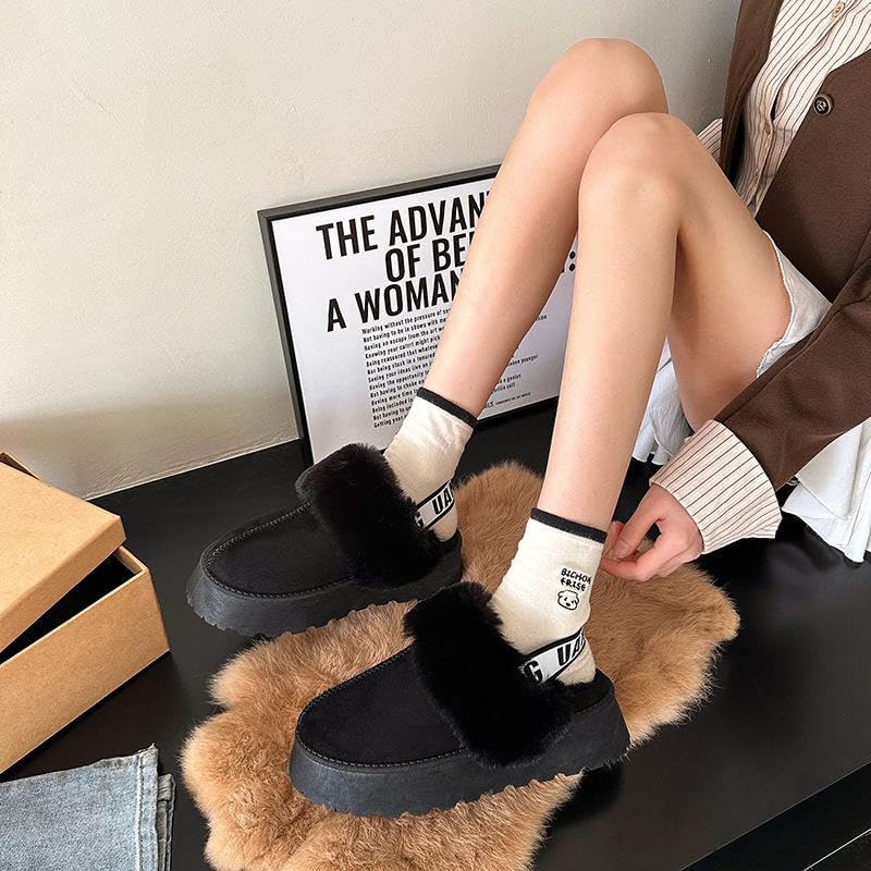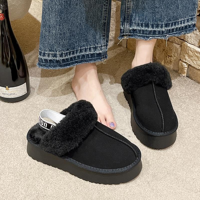 Chunky Platform Sole, Faux Fur Trim, Slingback Strap, Textured Tread Pattern