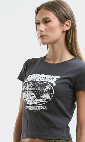 Ravin - تيشرت سهل الارتداء بقصة مريحة بطبعة كلمة «Paradise»