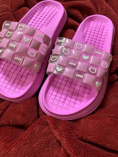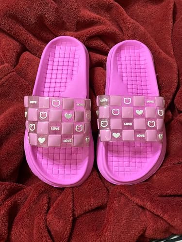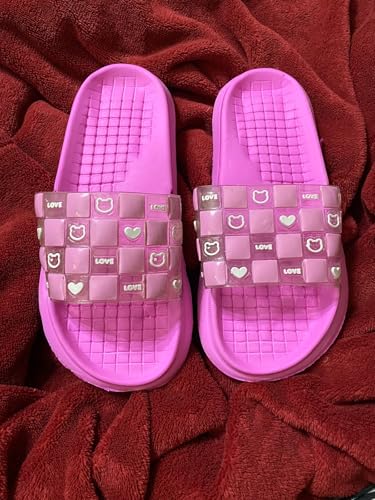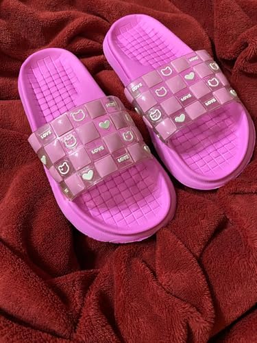 Generic - شبشب حريمى وبناتى فوشيا قلوب نعل طبي مريح - شبشب خروج ومنزل - شبشب شاطئ Slipper Hearts Fuchsia For Women & Girls, Non Slip & Soft - Outdoor, indoor & Beach - Medical & Comfortable Leather