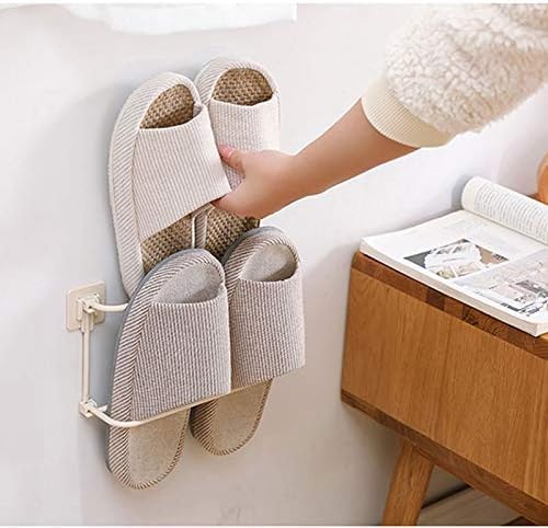 Generic - رف احذية من الحديد، رف تخزين الاحذية، رف منظم الاحذية، رف منظم الاحذية، رفوف احذية لغرفة المعيشة والحمام، طبقة واحدة، رف احذية يثبت على الحائط بلون ابيض