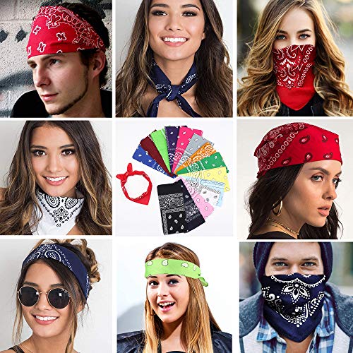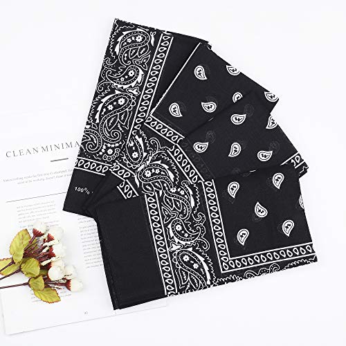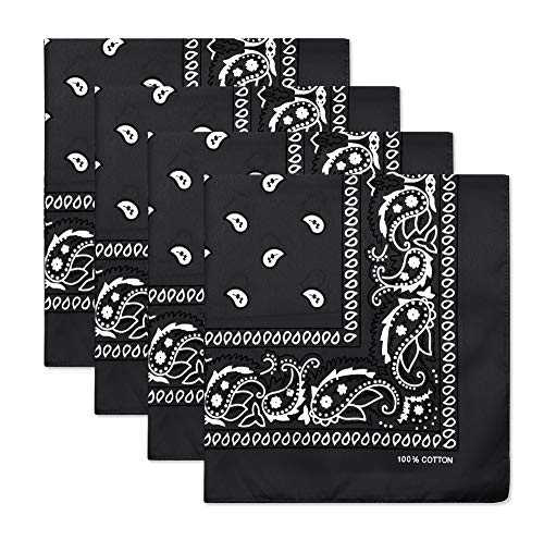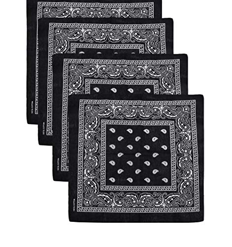 Sllaiss - Sllaiss 4-14 قطعة 100٪ قطن بيزلي باندانا متعددة الأغراض مناديل كاوبوي وشاح للوجه وشاح رأس للجنسين 22 × 22 بوصة ، أسود ،