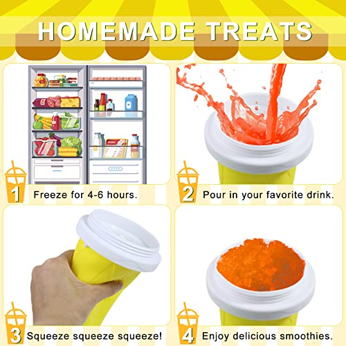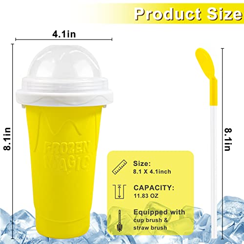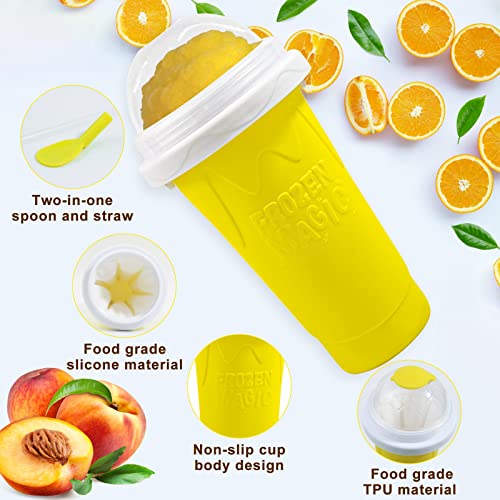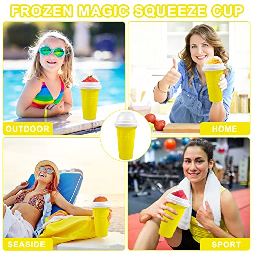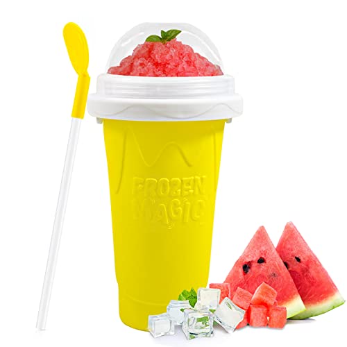 EFUNICE - كوب مشروبات سلاشي سحري لصنع المشروبات المثلجة، كوب تجميد عصائر مثلجة بلمسة سحرية، كوب مع غطاء وشفاطة، لتحضير عصائر سموذي والمشروبات المثلجة المنزلية في الصيف بطريقة ممتعة وسهلة (لون أصفر)