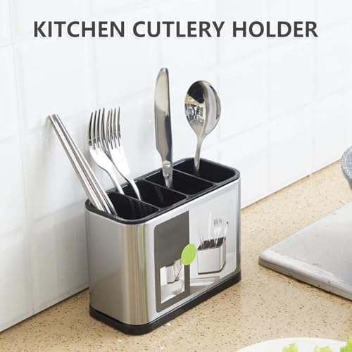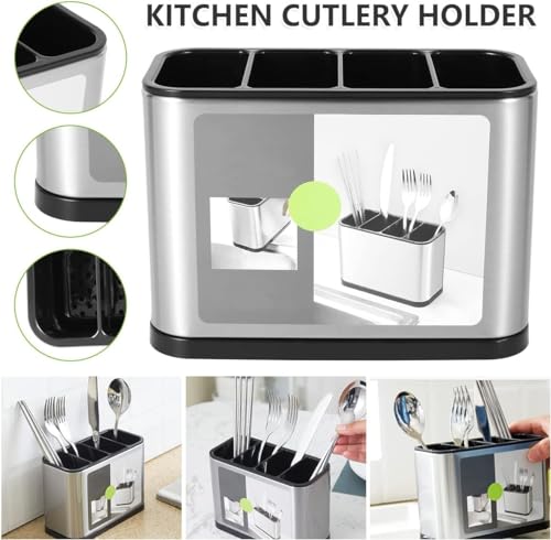 Slzhds - حامل لأدوات المائدة، مصفاة لأدوات تناول الطعام من الفولاذ المقاوم للصدأ، منظم أدوات المائدة، حامل أدوات المائدة من 4 أقسام مضاد للانزلاق ومقاوم للخدش وقابل للتصريف من اس ال زد اتش دي اس