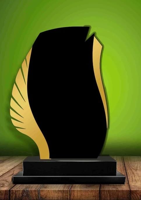 Generic - SM4U Art Deco Wooden Trophy Award, Black with Gold Fan Accent, 30 cm Height, Modern Design for Recognition and Achievement