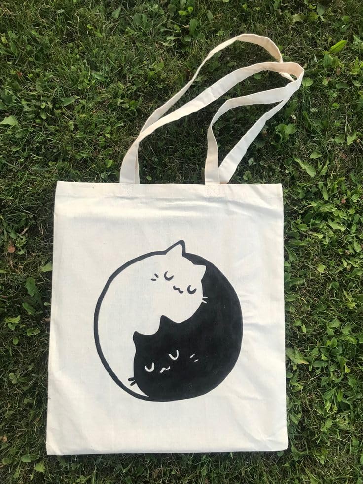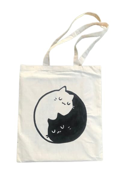 Generic - شنطة يد كبيرة توت قماشية بتصميم قطة سوداء لطيفة، مقاس 38 × 42 سم من اس ام 4 يو