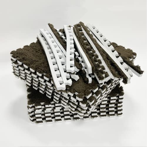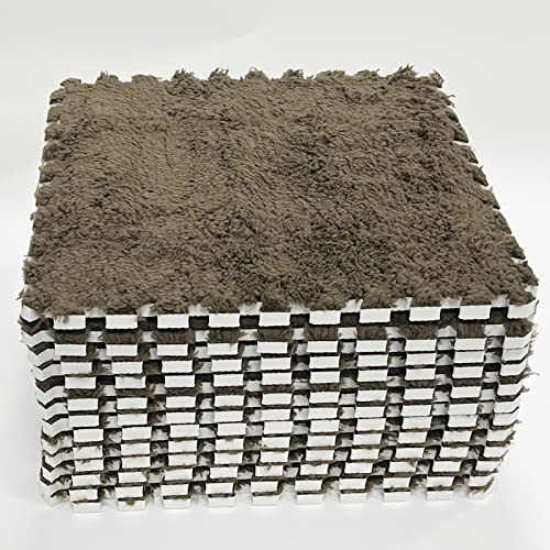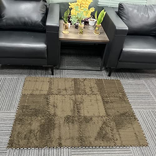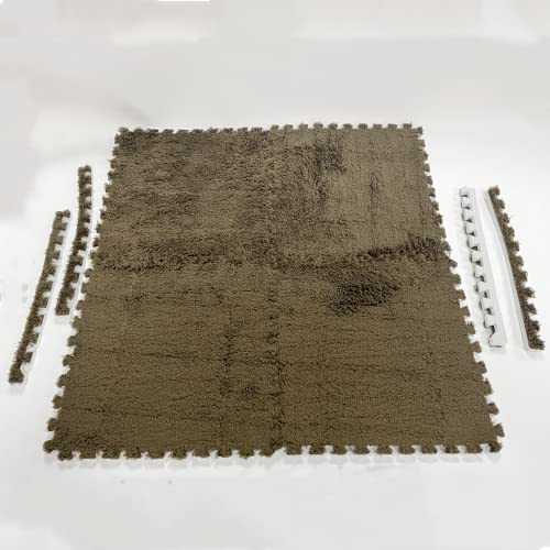 smabee - Smabee Interlocking Carpet Shaggy Soft EVA Foam Mats Fluffy Area Rugs Protective Floor Tiles Exercise Play Mat for Children Kids Room Home Parlor Bedroom (12 Pcs, Brown)