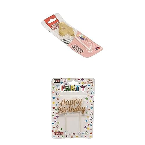 Generic - Small birthday glitter candle with number 4 design for cake decoration - gold + Large birthday glitter candle with happy birthday design for cake decoration - gold white