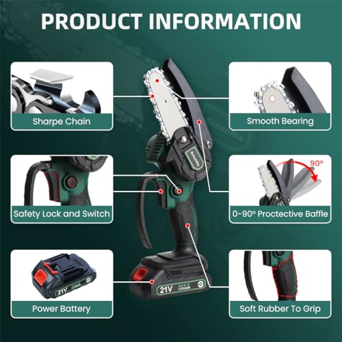 - 【تفاصيل المنشار الصغير】تصميم مقبض مريح ومطاط مرن يجعله أكثر راحة. المحرك صغير الحجم وقوي. يتم تبريد لوحة التوجيه والسلسلة وتقويتها، وهناك تروس عند دوران لوحة التوجيه لجعل السلسلة أكثر سلاسة في الاستخدام. يحتوي المحرك على حماية مدمجة من الحرارة الزائدة والتيار الزائد حتى لا يسخن المحرك بشكل سيء وسهل الاحتراق. ولكن بمجرد ارتفاع درجة حرارة المحرك، يجب عليك الانتظار 3 دقائق قبل أن تتمكن من استخدام هذا المنشار مرة أخرى.