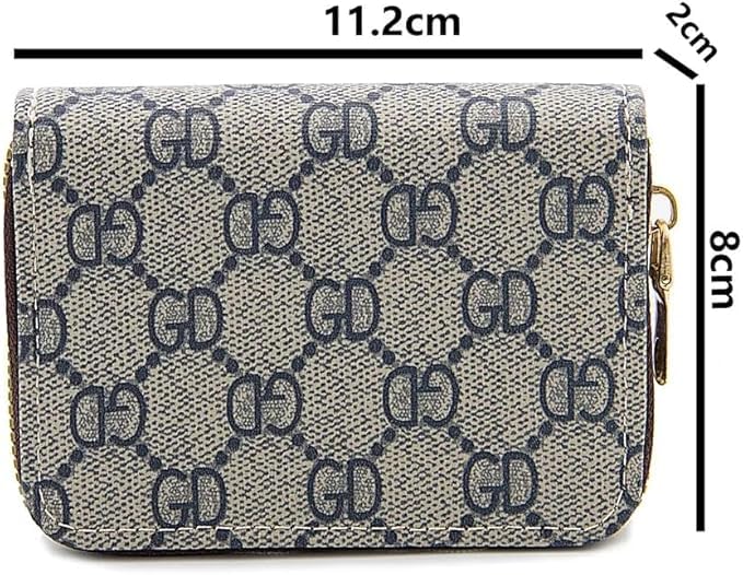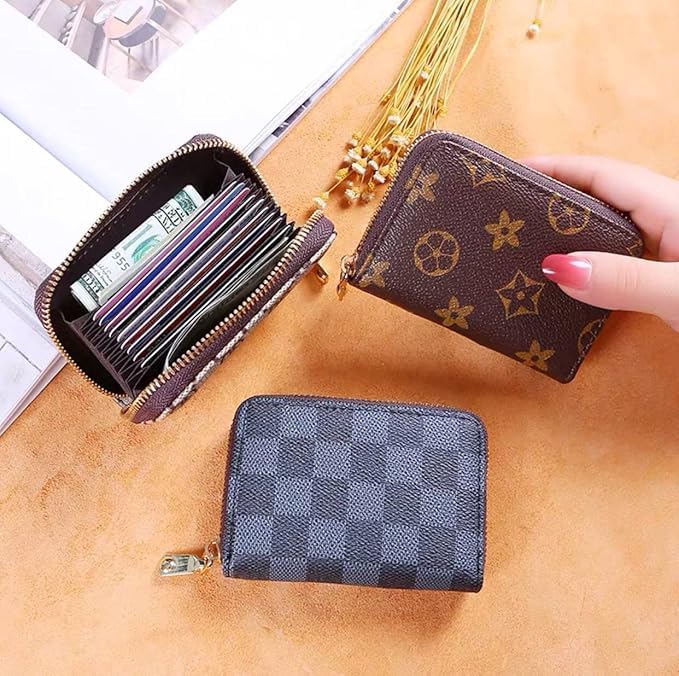 - DESIGN: Compact card holder wallet featuring classic checkered pattern in blue and navy tones with durable zipper closure