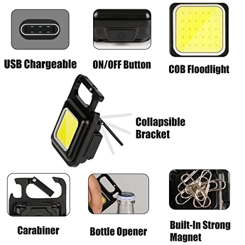 - High Bright: The large COB surface of small keychain light high lumen provides wide-angle bright illumination and up to 800 lumens of edc flashlight. Small COB key lights can also be used as small work lights and safety emergency lights.