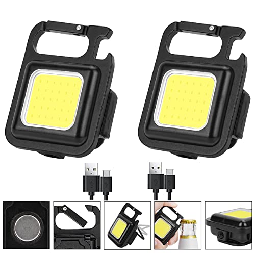 Meqoze - Small Flashlights, 800Lumens Rechargeable COB Tiny Keychain Flashlight 4 Light Modes Portable Mini Magnetic Bright Compact EDC Pocket Light with Collapsible Bracket Bottle Opener Walking (Black X 2)