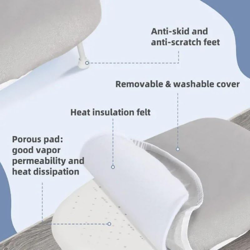 - تصميم مضغوط: لوح كي صغير وخفيف الوزن بقياس 60 × 37 × 17 سم، ويزن 1.1 كجم فقط ولكنه قادر على تحمل سعة حمولة تصل إلى 25 كجم