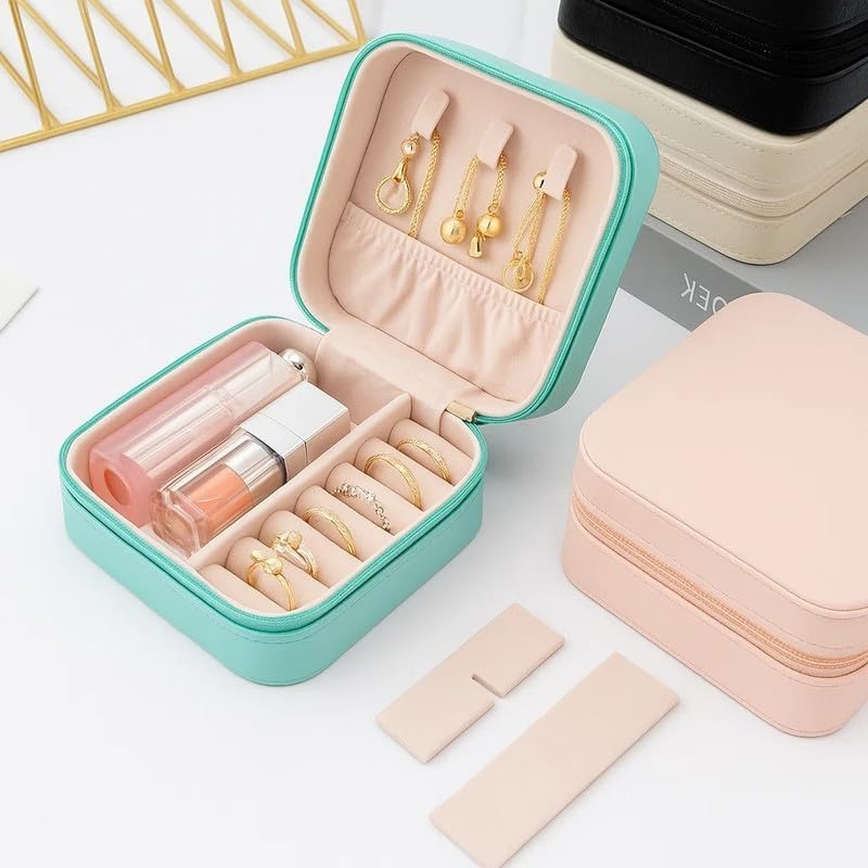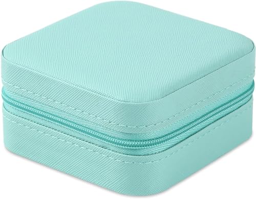 Generic - Small Jewelry Box, Small Travel Jewelry Organizer, Portable Jewelry Box Storage Organizer for Rings Earrings Necklaces (Turquoise)