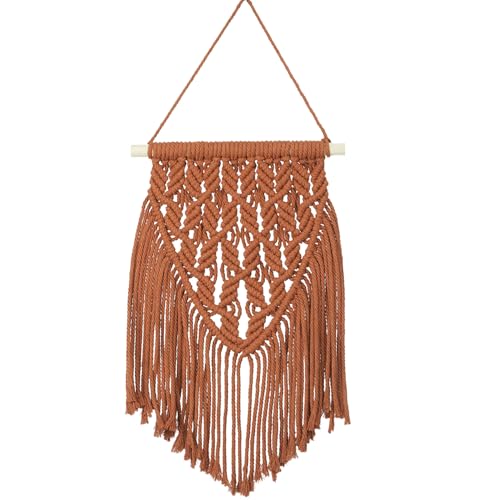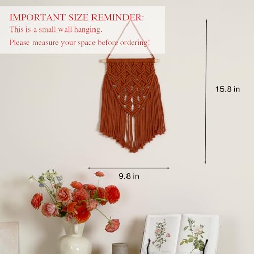Nashibowu - Small Macrame Wall Hanging Decor Boho Tapestry for Bedroom Living Room Dorm Nursery and Office, Cute Aesthetic Wall Art for Small Spaces for Teen Girls and Home Decor (Firebrick Red, 16*10 Inch)