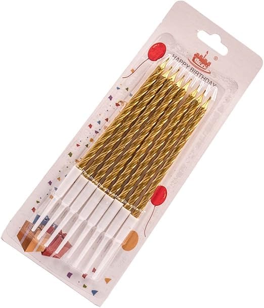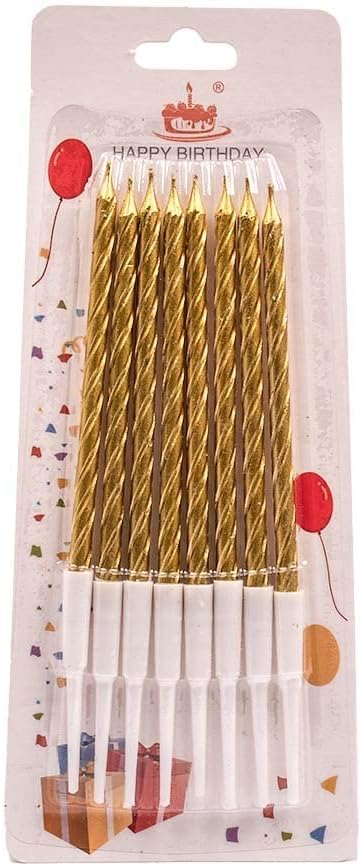 Generic - Small Metallic Birthday Candle With Holder And Swirl Design Set Of 8 Pieces For Birthday Party - Gold White