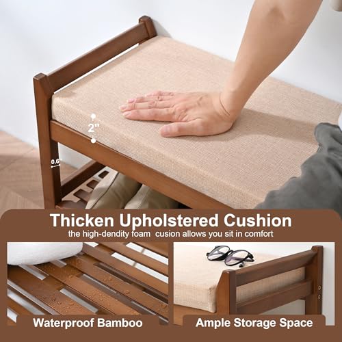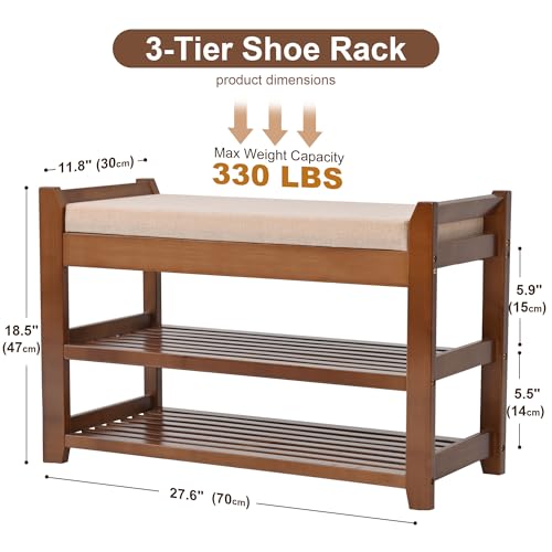 - هيكل ثابت - مصنوع من خشب الخيزران عالي الجودة، يتميز مقعد رف الأحذية بهيكل صلب وموثوق، يمكنه تحمل ما يصل إلى 330 باوند.