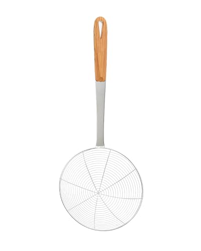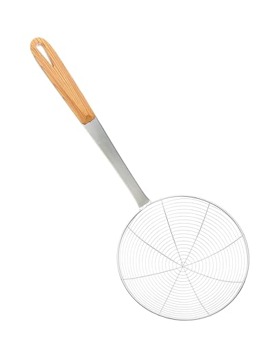 H-Home - Small Stainless Steel Spider Strainer/Skimmer/Ladle with Wooden Handle for Cooking and Frying – Durable and Heat-Resistant