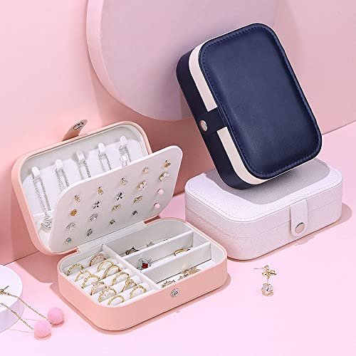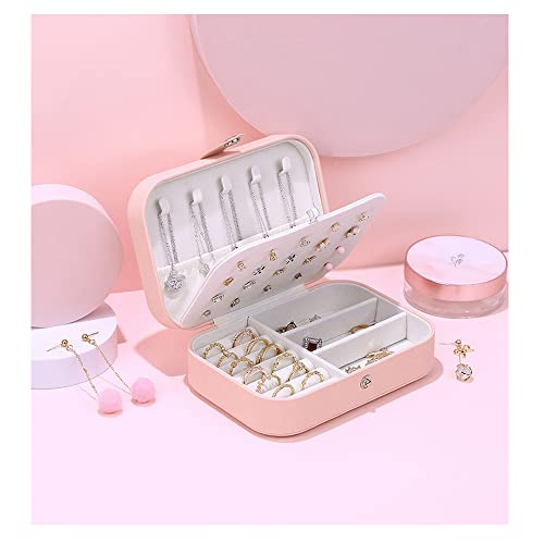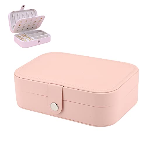 Generic - Small Travel Mini Small Square Jewelry Box Organizer Display Case for Girls Women Ladies Mother Girlfriend Daughter Gift Rings Earrings Necklaces Storage (Pink)