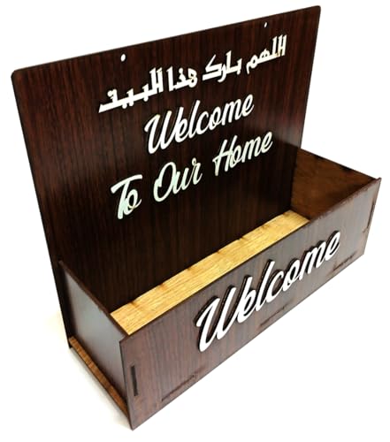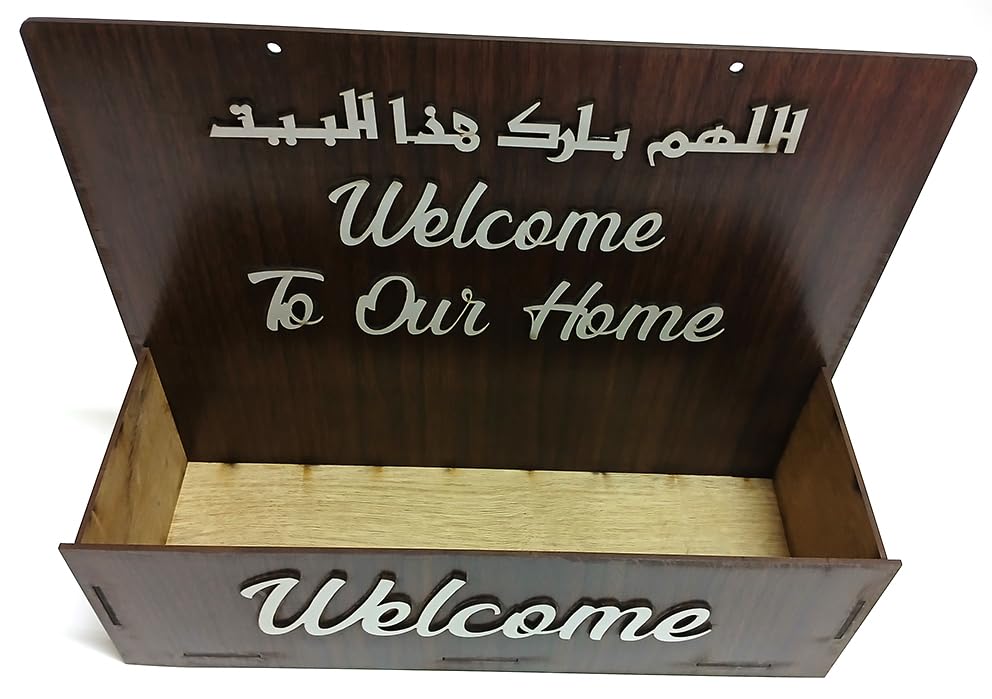 عام - عليقة منزل وصندوق خشب ديكوري لتجميع المتعلقات لون بني (اللهم بارك هذا البيت)