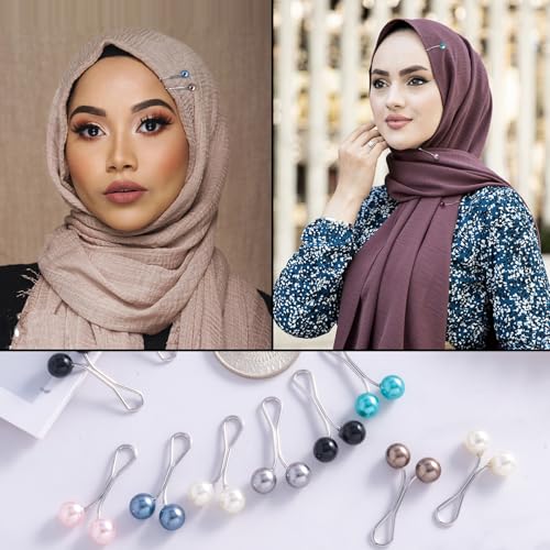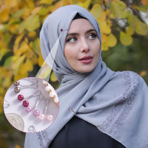 SmallCat - دبوس حجاب للنساء على شكل حرف U، دبوس أمان ببروش لؤلؤ صناعي لغطاء الرأس والسكارفات وأوشحة الحجاب الإسلامي من سمول كات، معدني بلا أحجار كريمة، 12 قطعة، مقاس عادي