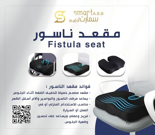 Smart A.S.B - وسادة لتقويم عظام العصعص ومقعد الناسور من سمارت ايه اس بي - وسادة مقعد من الميموري فوم لتخفيف الام عظم الذنب - تصميم على شكل حرف U