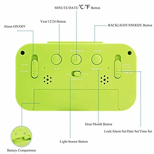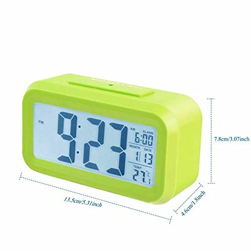 Generic - منبه رقمي بتقنية استشعار الإضاءة المنخفضة ودرجه الحراره على مدار الساعة، أكريليك، أخضر
