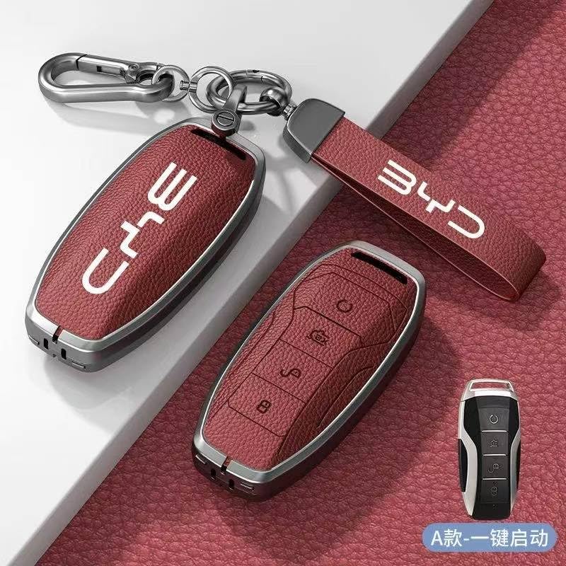 ecosystem - Smart Car Key Case – Compatible with BYD (Atto , Dolphin, Han, Tang, Yuan, Song , Qin) – Black 4 Buttons Key Fob Cover with Key Ring (Red Wine)
