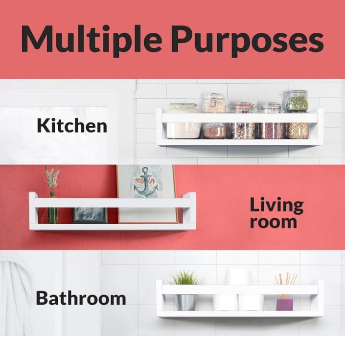 - ✅ رف متعدد الاستخدامات والوظائف - مع هذه الرفوف لا يوجد حدود للإبداع. ضعها في الحمام أو المطبخ أو في غرفة النوم. سوف تناسب أي مساحة وأي نمط بفضل تصميمها الأساسي ولونها الأبيض البسيط.