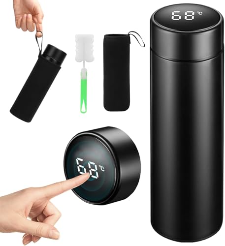 Generic - Smart Digital Bottle 500ml with Tea Infuser - Premium Vacuum Flask with Double Insulation Technology to Keep Drinks Hot or Cold All Day Touch Screen Display Stylish Scratch Resistant Design (Black)