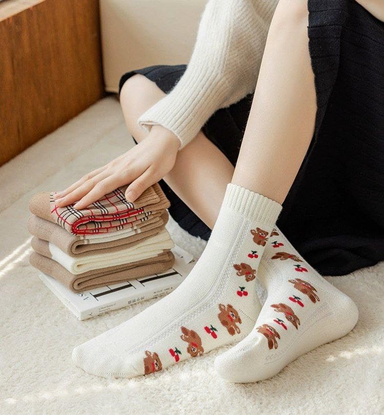 SMARTEDGE - Smart Edge Women's Fashion Warm Socks Ultra Soft Warm Winter Ankle Long Socks Set of 5 Pairs with Gift Multicolor .Fashion Design for Women Girls