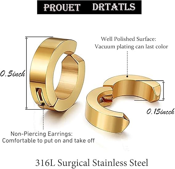 SMARTEDGE - Smart Edge Women's Non Piercing Earrings, Stainless Steel Clip, Hypoallergenic, Gold, Suitable for All Occasions