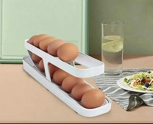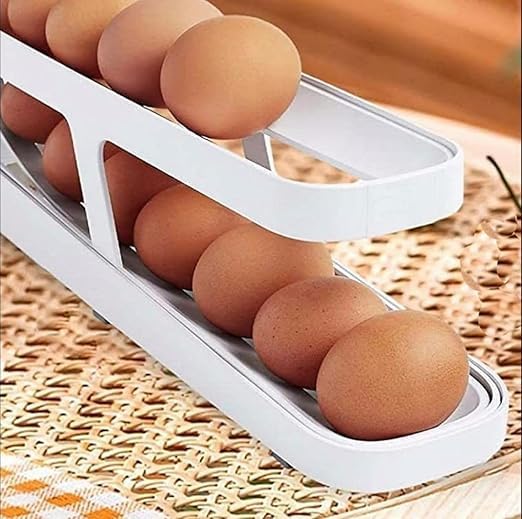 Generic - حامل ومنظم بيض ذكي للثلاجة بسعة كبيرة وتصميم مزدوج الطبقات مع سحب تلقائي، يحافظ على البيض طازجًا ويمنع الكسر، مناسب لتنظيم المطابخ الحديثة