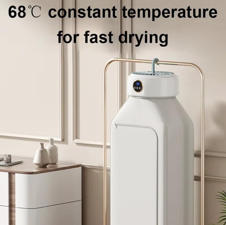 Generic - Smart Electric Clothes Dryer with Digital Display, White, Portable Hanging Wardrobe Drying Rack, 8-10 Garment Capacity, LED Temperature Control